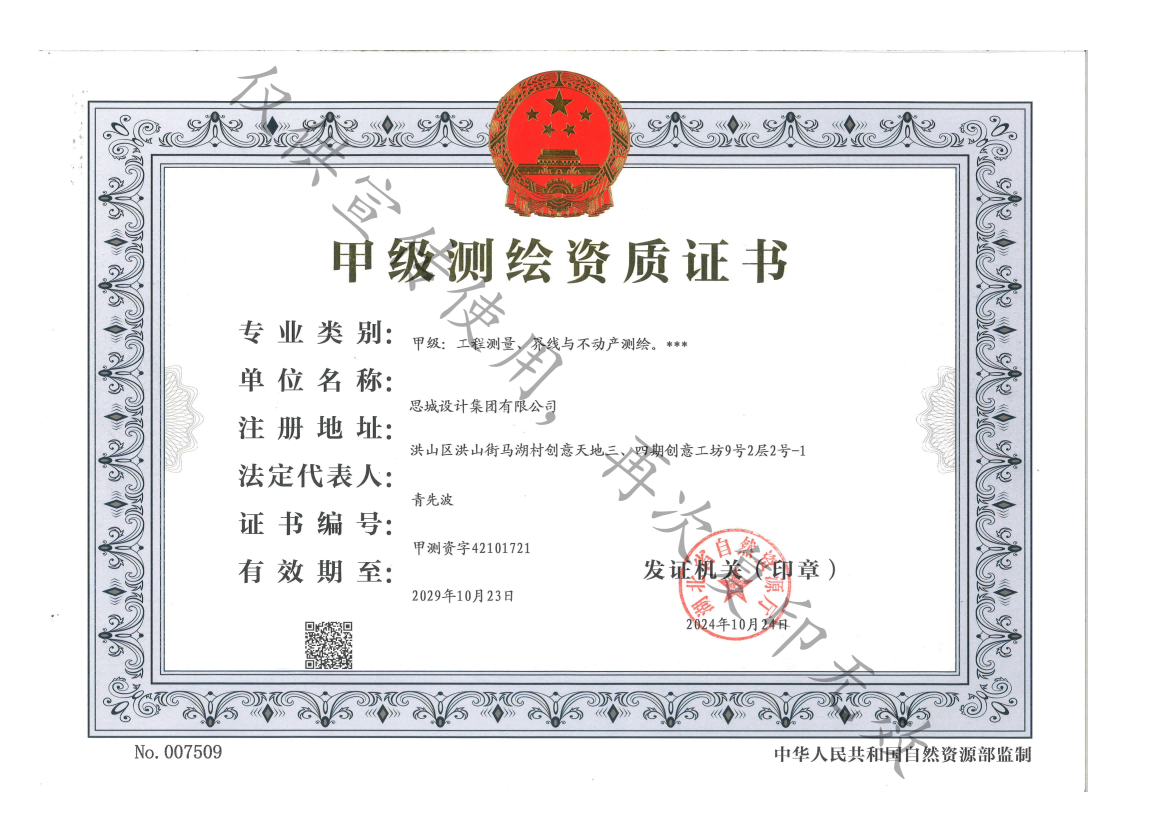 • 甲級測繪資質證書